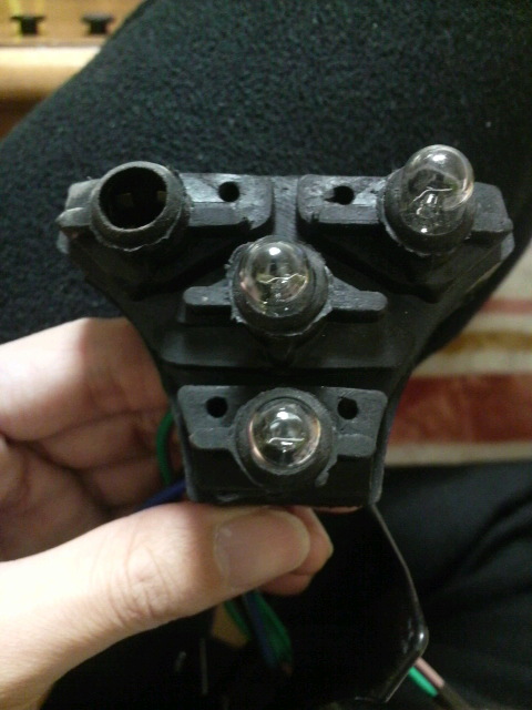 商品を確認、インジケーターの中を確認すると、えっ!電球が付いていない。左ウインカー用の電球が付いていない。