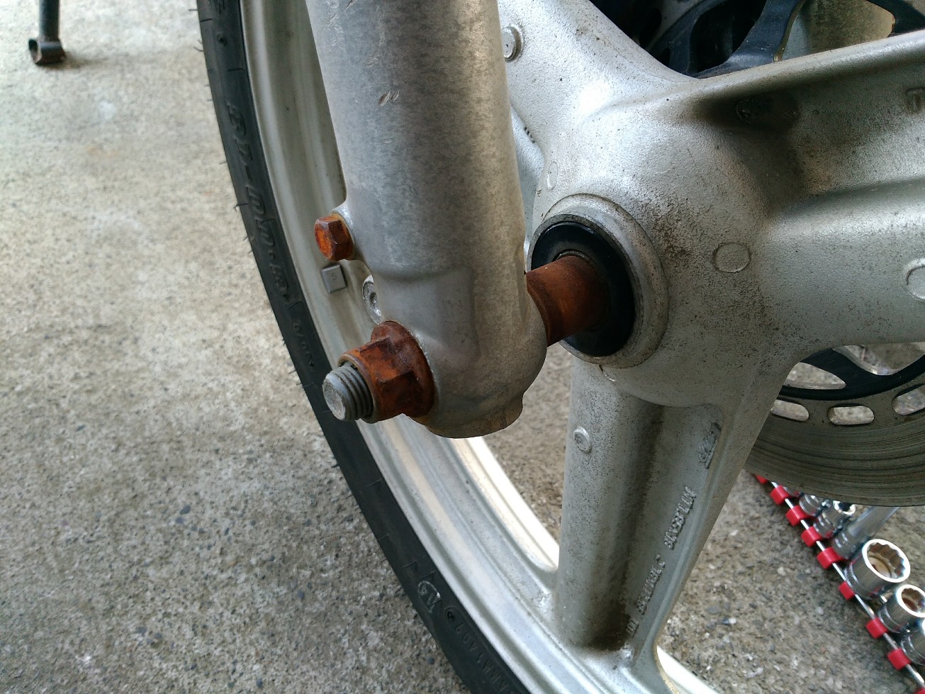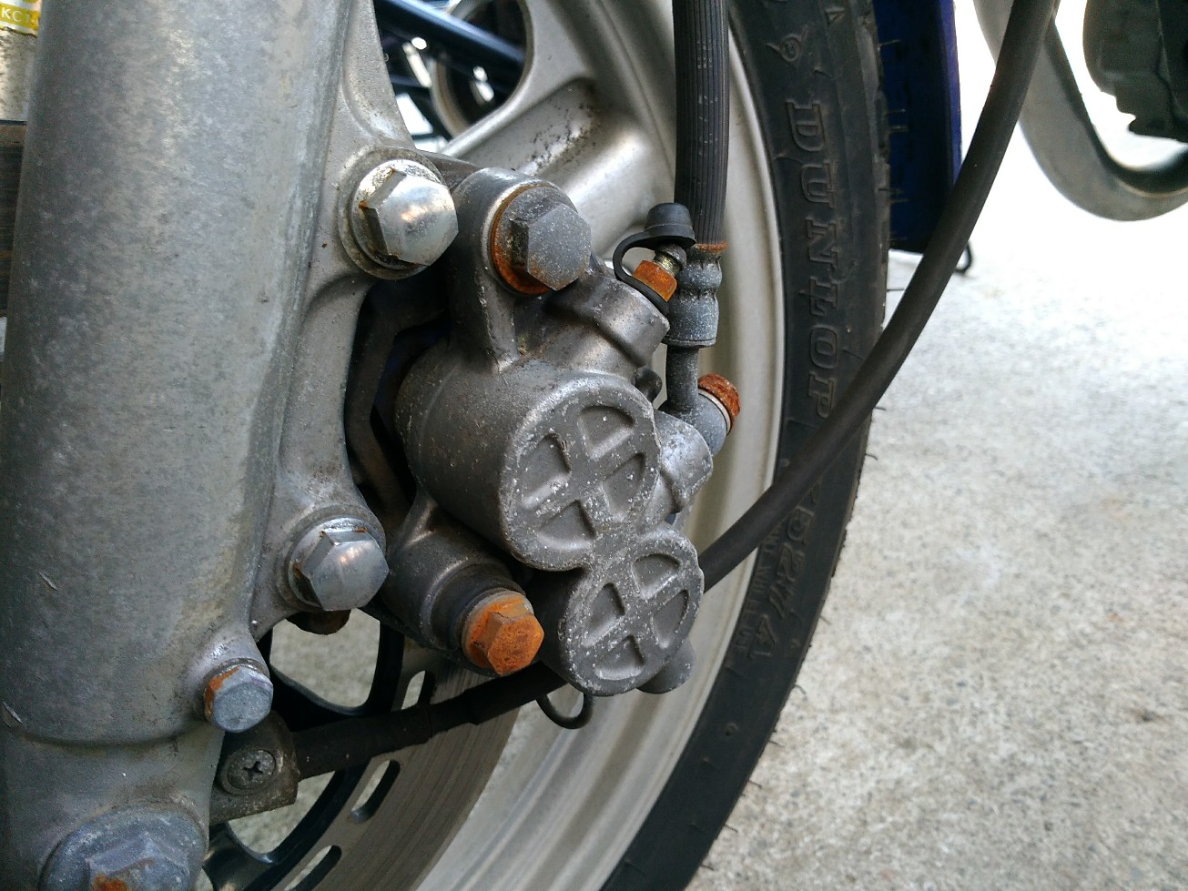 フロントブレーキは効いたままピストンが戻らなくなっています。