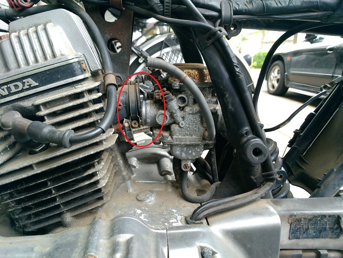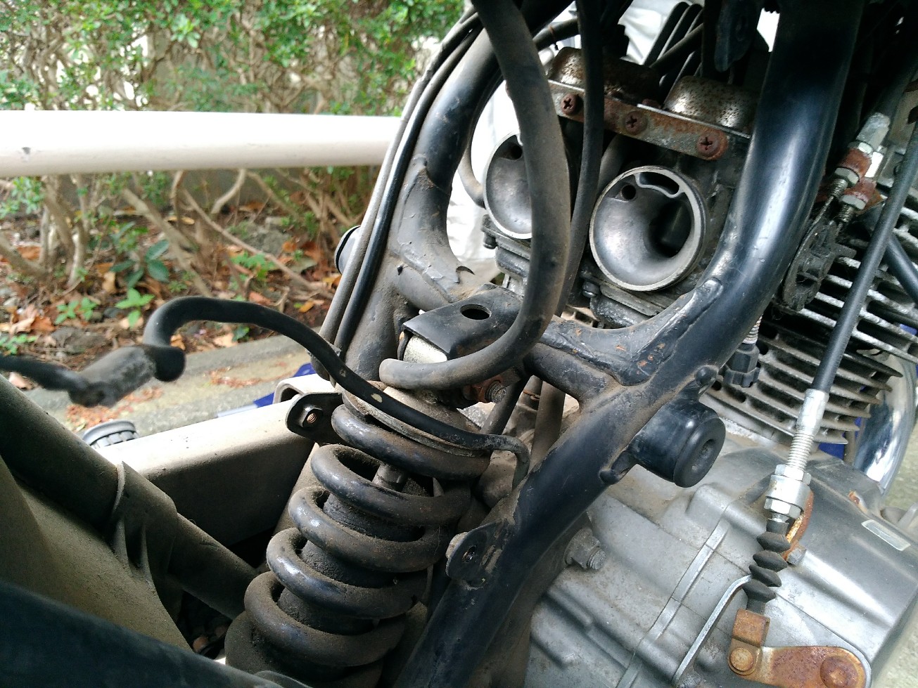 エンジンまでのエアインテークを外さないとキャブを外せないようです。あ~面倒くさい。