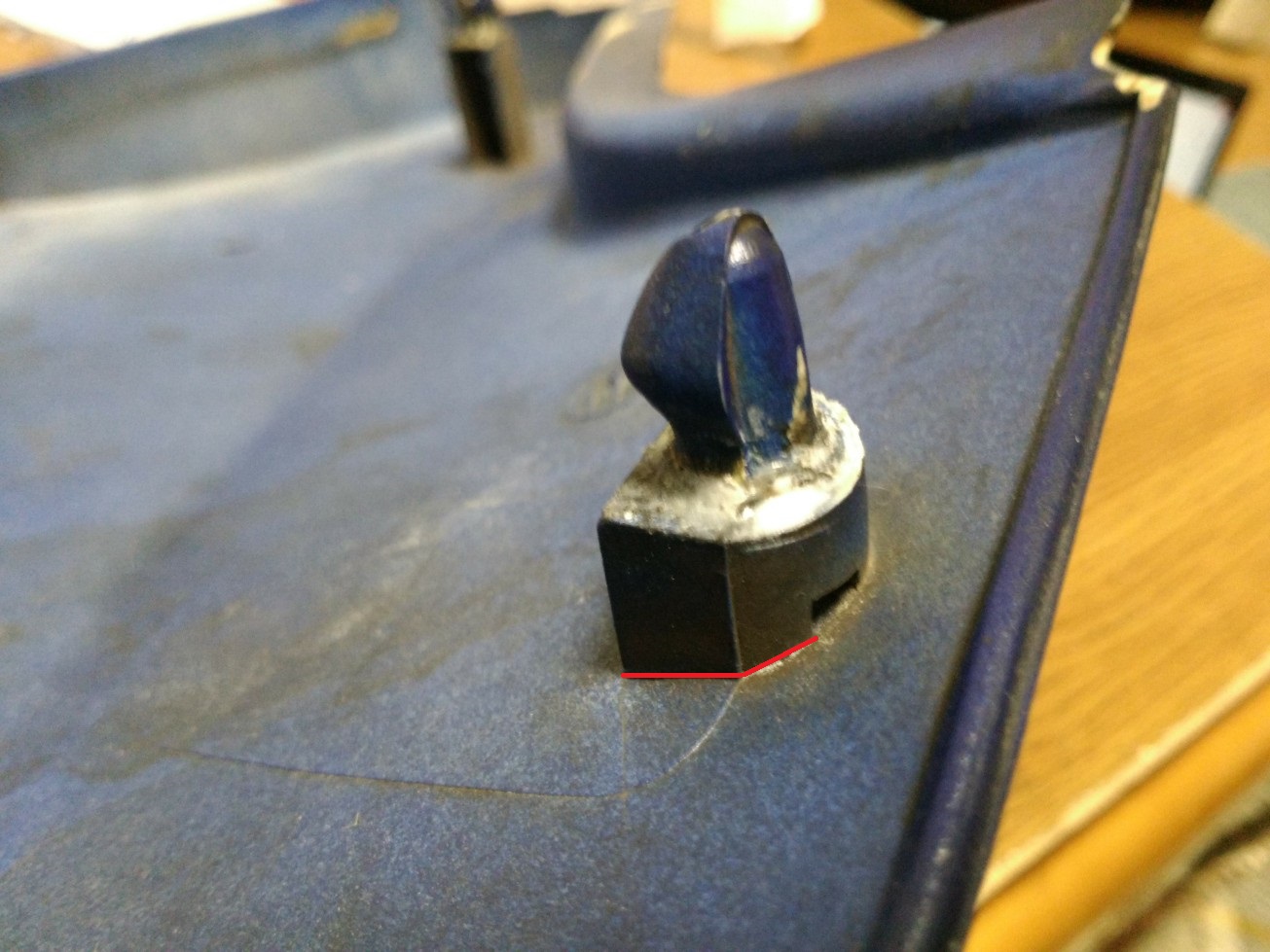 良く見ると付け根の赤線の部分がひび割れています。