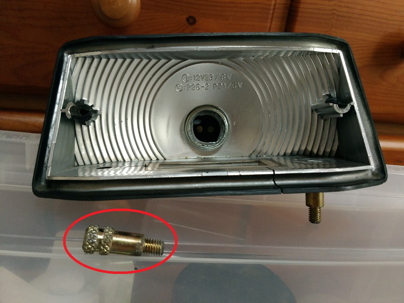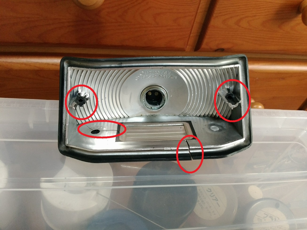 テールレンズを取り付けるネジ穴が