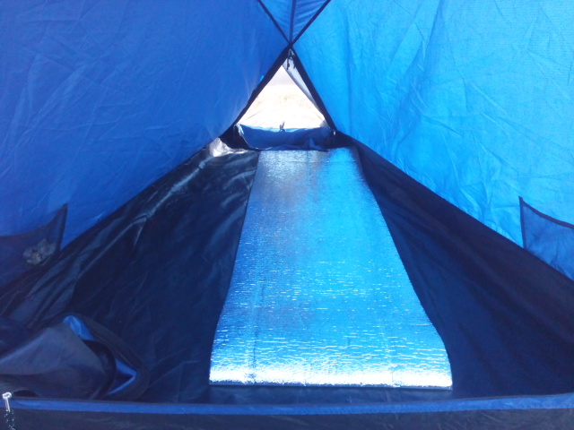 内部はというと、一人用の銀マットをしくとかなり余裕があります。