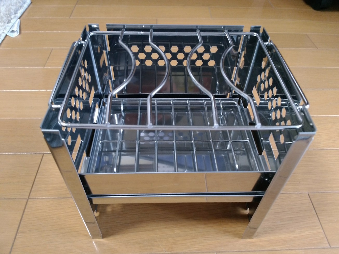 アマゾンで見つけた小さい焚火台兼バーベキューコンロ。セールで1,980円。
