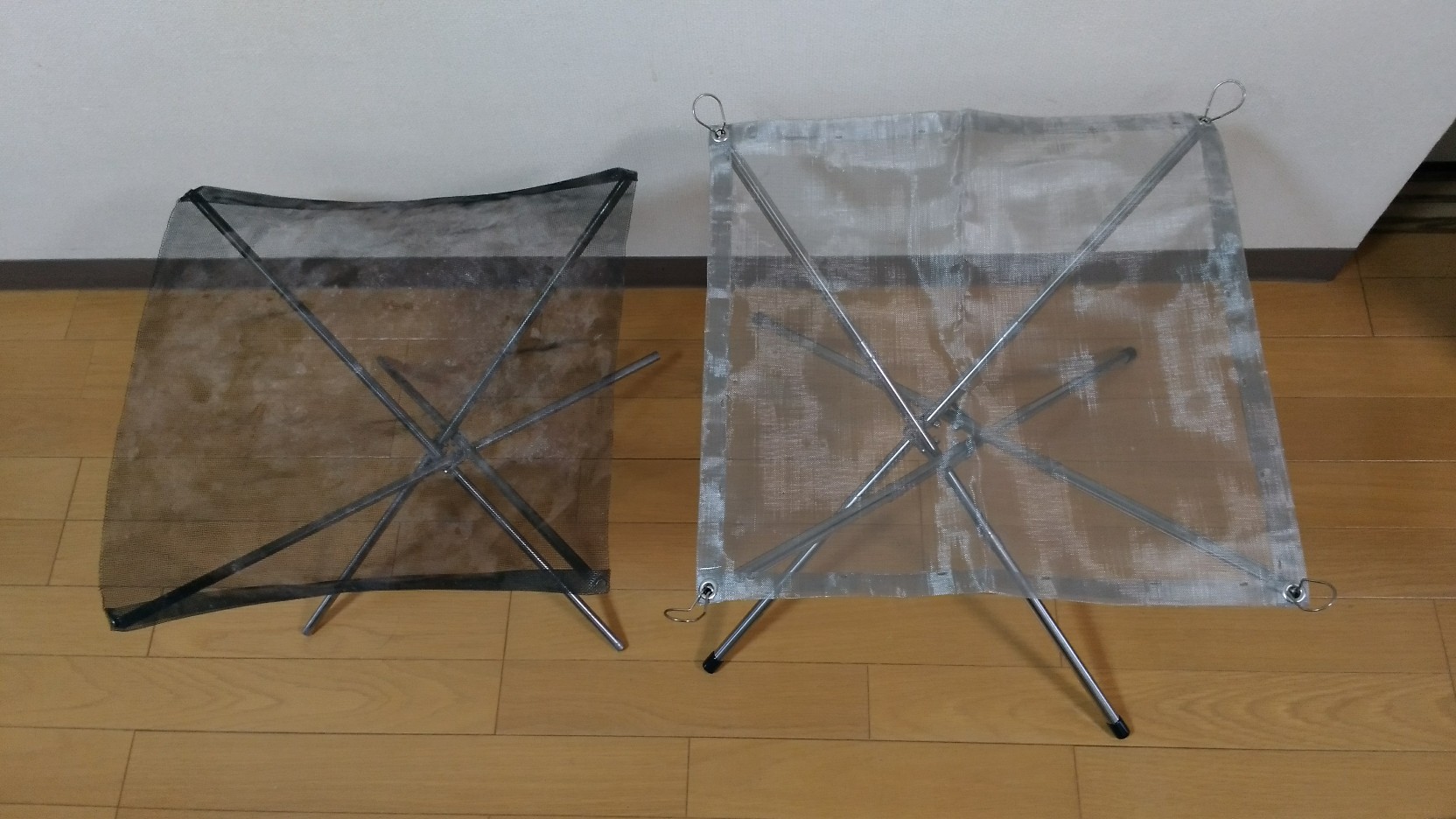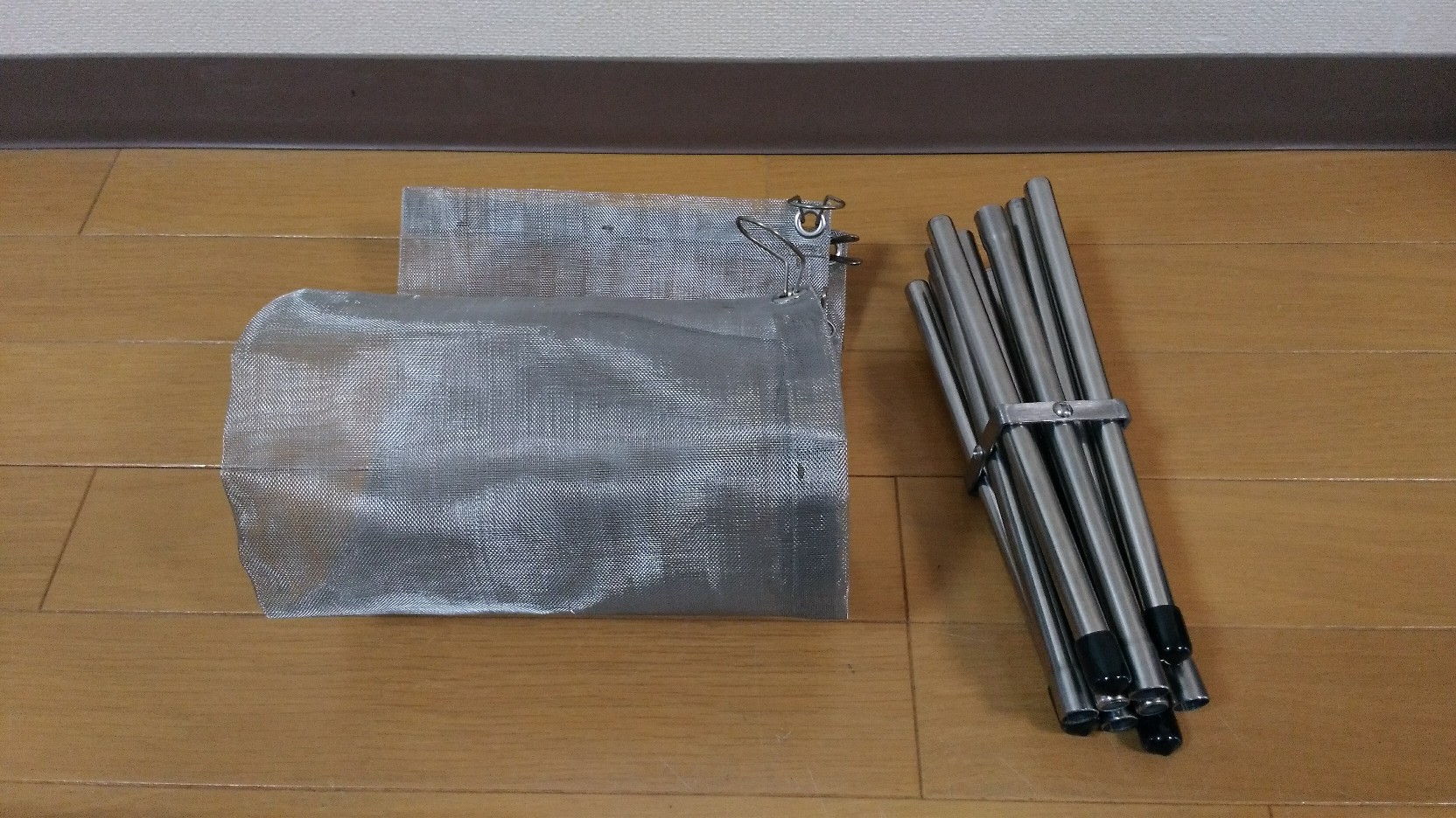 網は半分に折り曲げてからフレームに巻き付けて収納します。