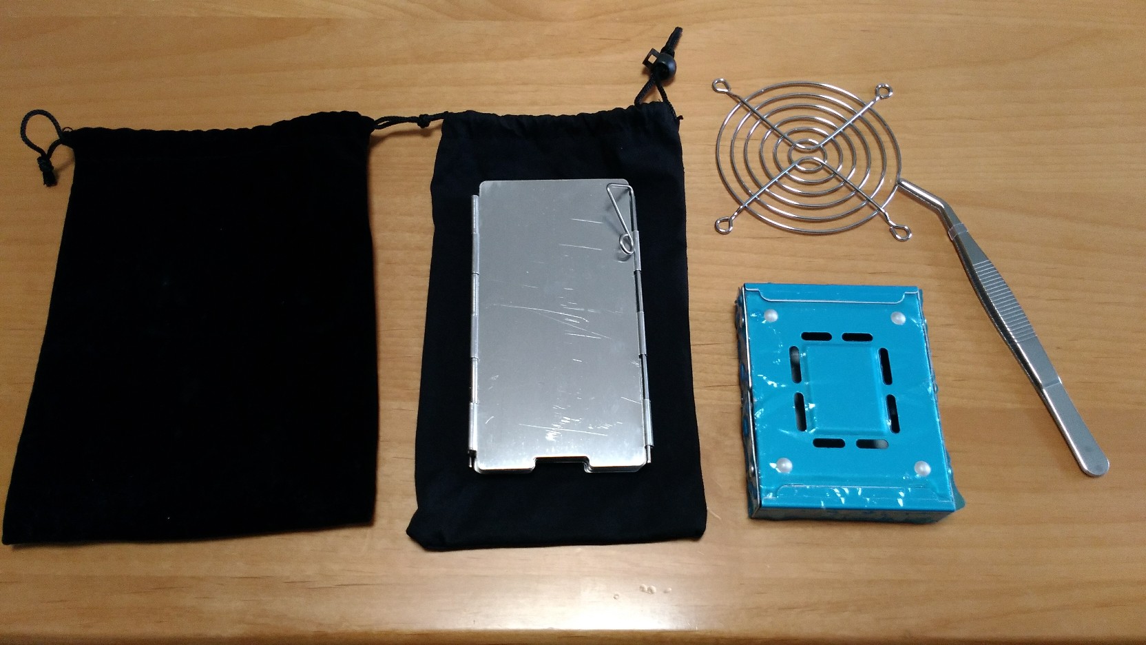 コンロ、網、風除けプレート、ピンセット,収納袋
