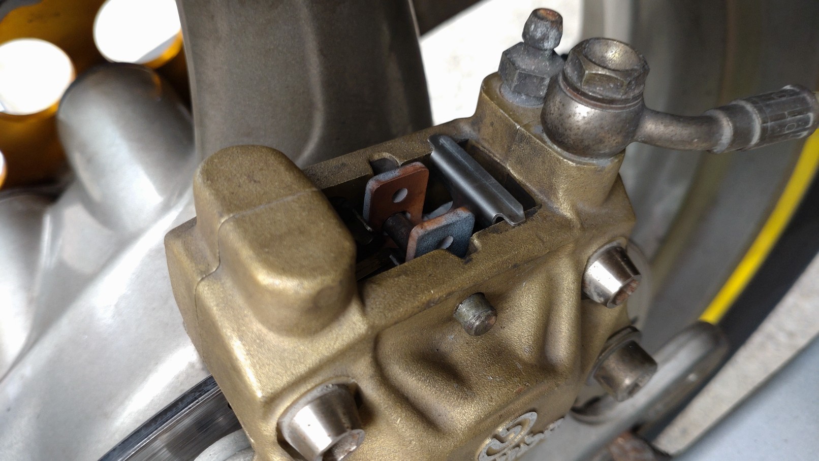 フロントのブレーキキャリパーの整備です。