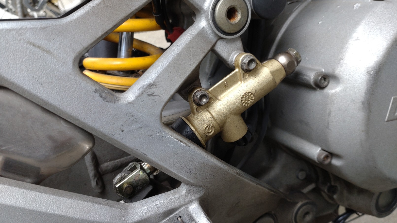 リアのブレーキマスタシリンダー。