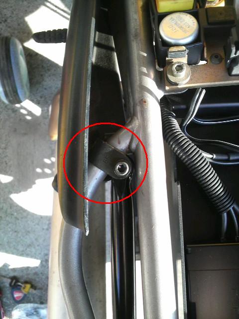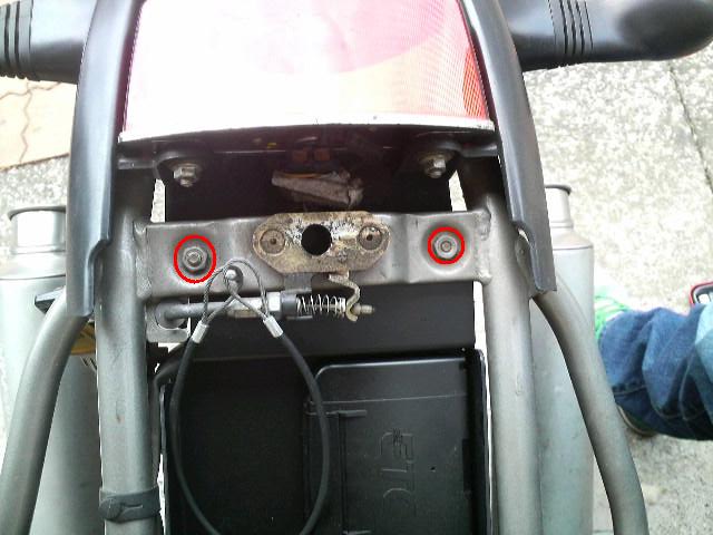 ⑦あとはここ。正規のボルトが到着したら、ここを取り付ければ終了です。