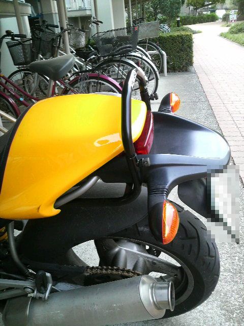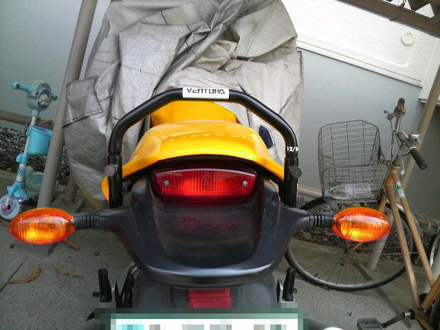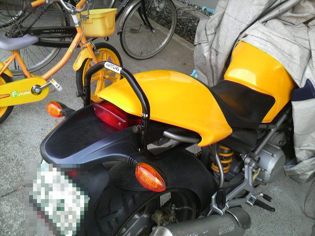 ⑤正規のボルトは、まだ到着していませんが、削ったナンバープレートホルダーが付くか試してみます。