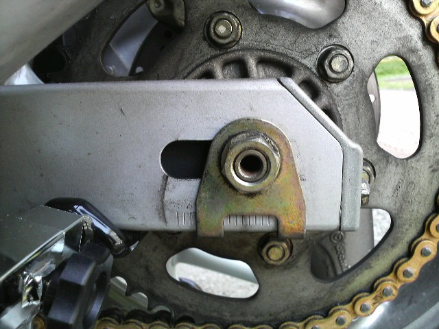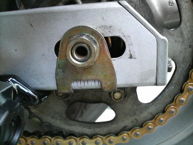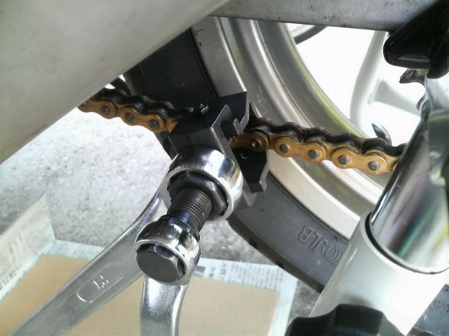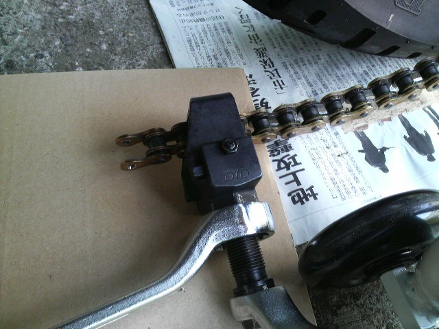 これが、やたらと長く取付けてしまったチェーン。伸びても調整幅ほとんどなし。