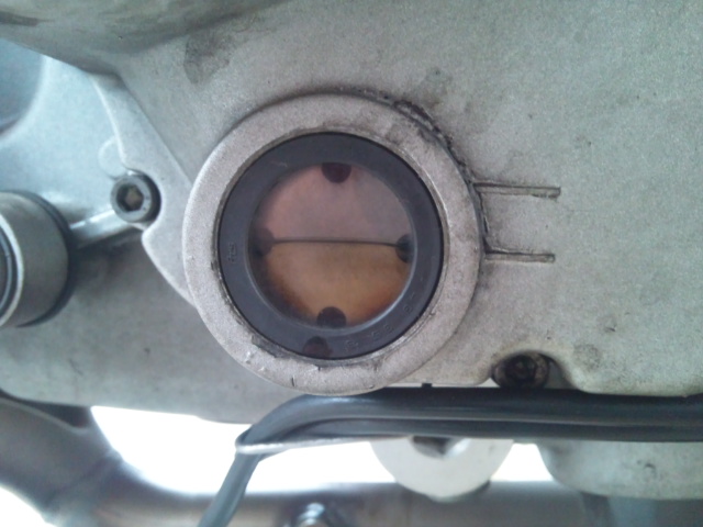 交換前は確認窓から見えるオイルが真っ黒です。