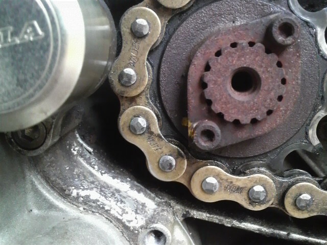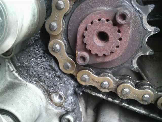 スプロケ周りでパーツクリーナーを使用したので、チェーンオイルを塗っておきました。