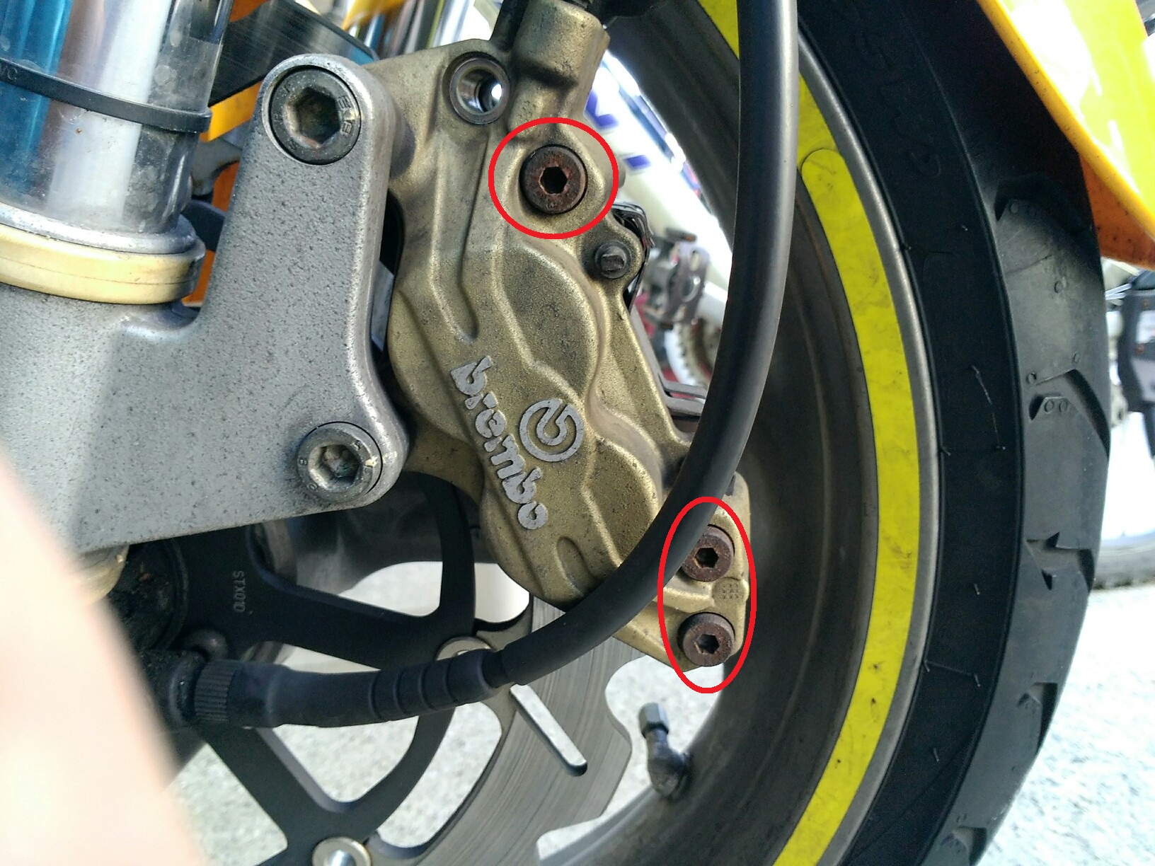 リアのブレーキキャリパーのブリッジボルトも換えよう。