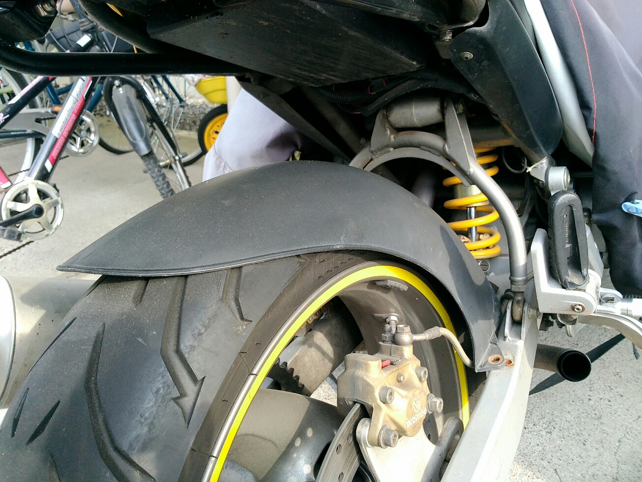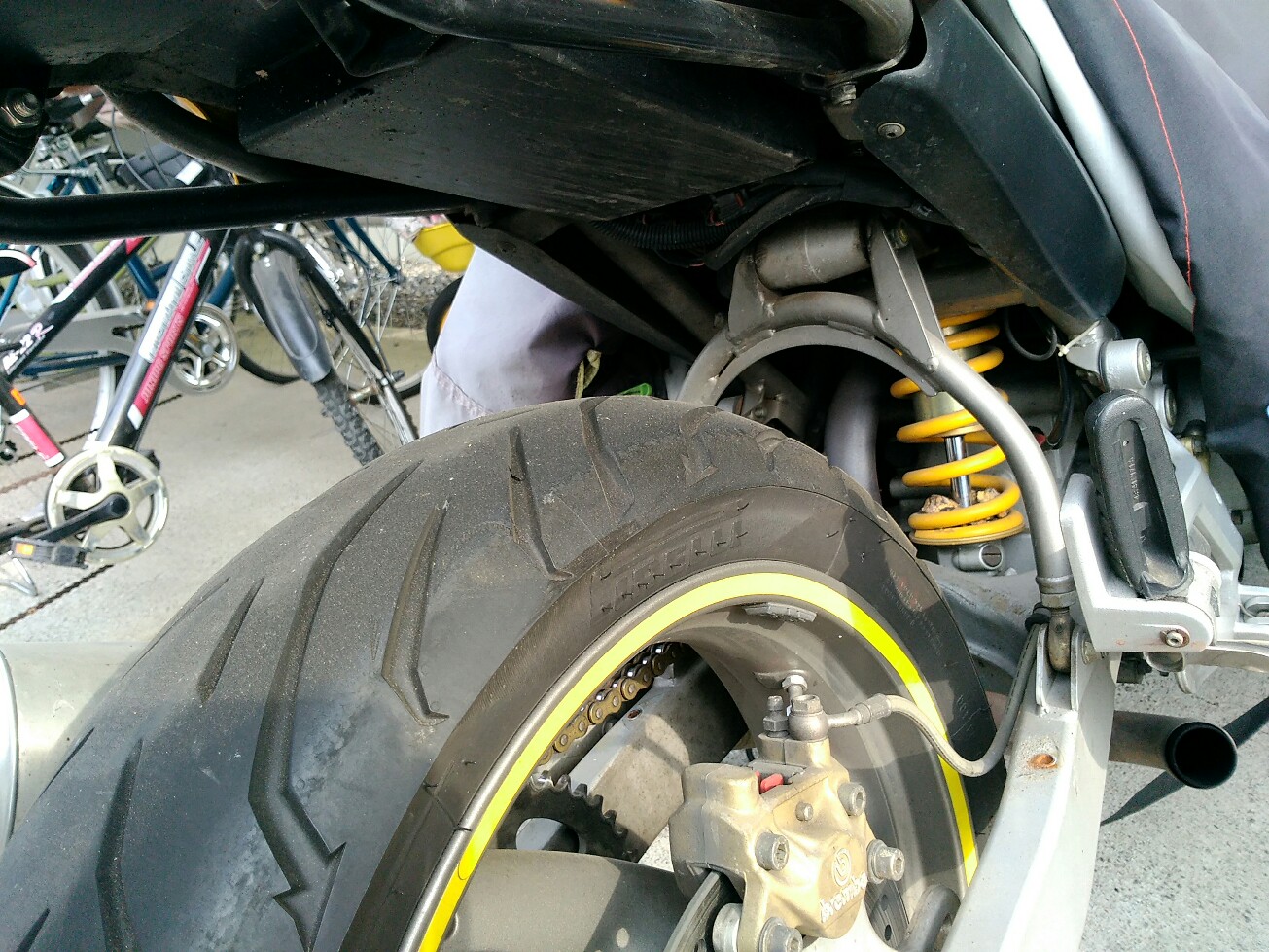 買い物がてらにオーバーホールしたブレーキを確認していると、フロントは大丈夫。
