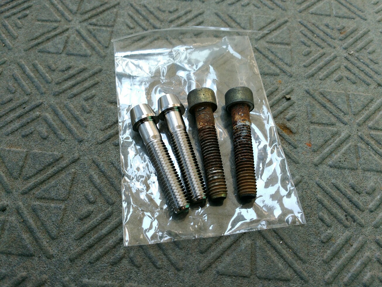 車検整備、フロントブレーキのオーバーホールの為に購入したクロモリ製ブリッジボルトが到着しました。