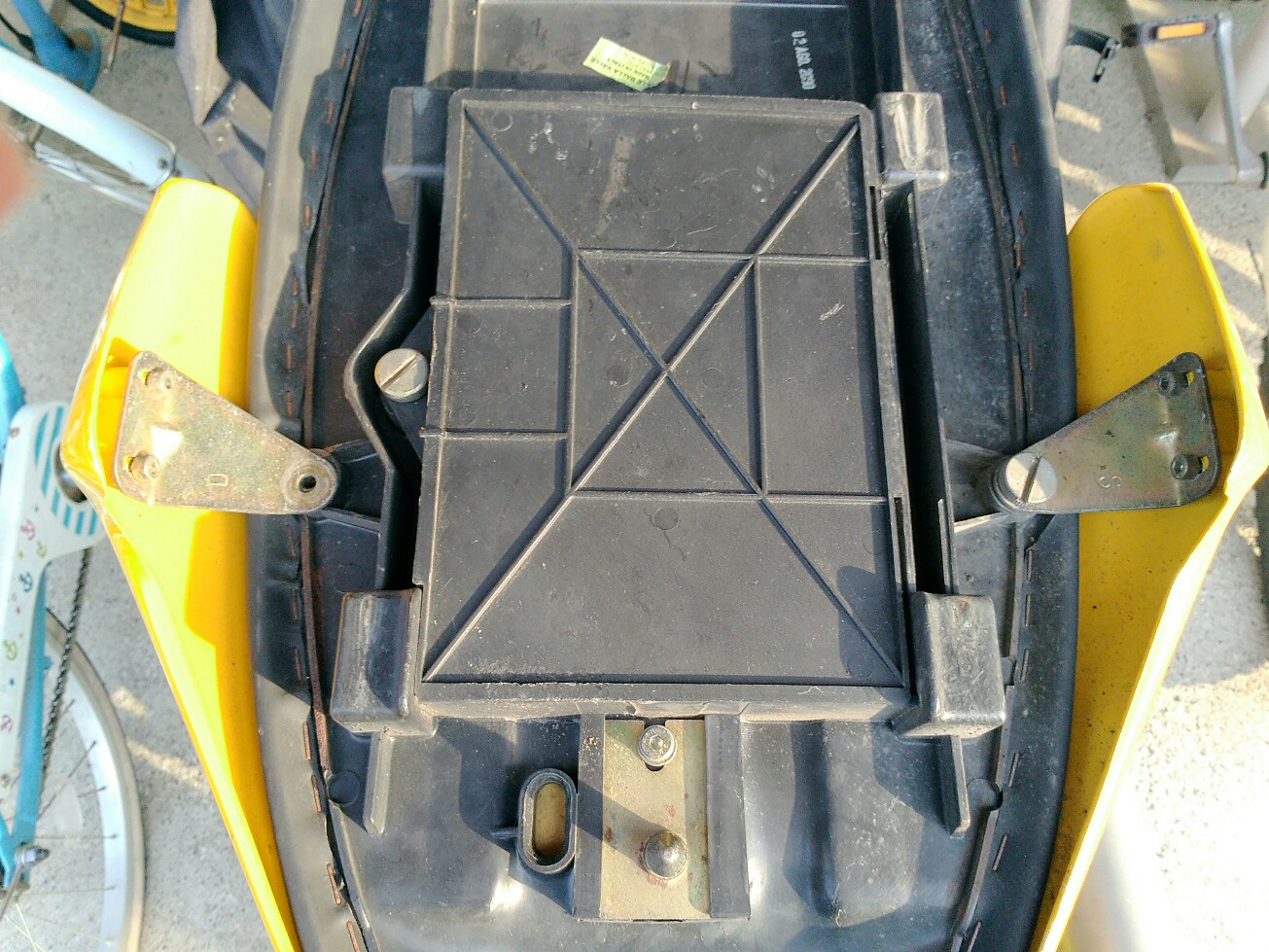 シートカバーを押さえている左側のボルト。