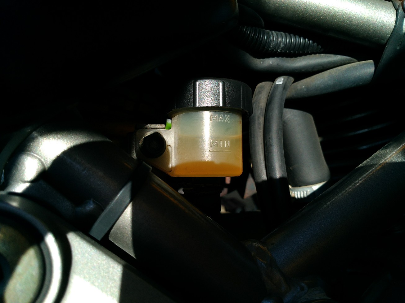 フロントブレーキとクラッチと同じクリアタイプのタンクにしようかなと思っていた為です。