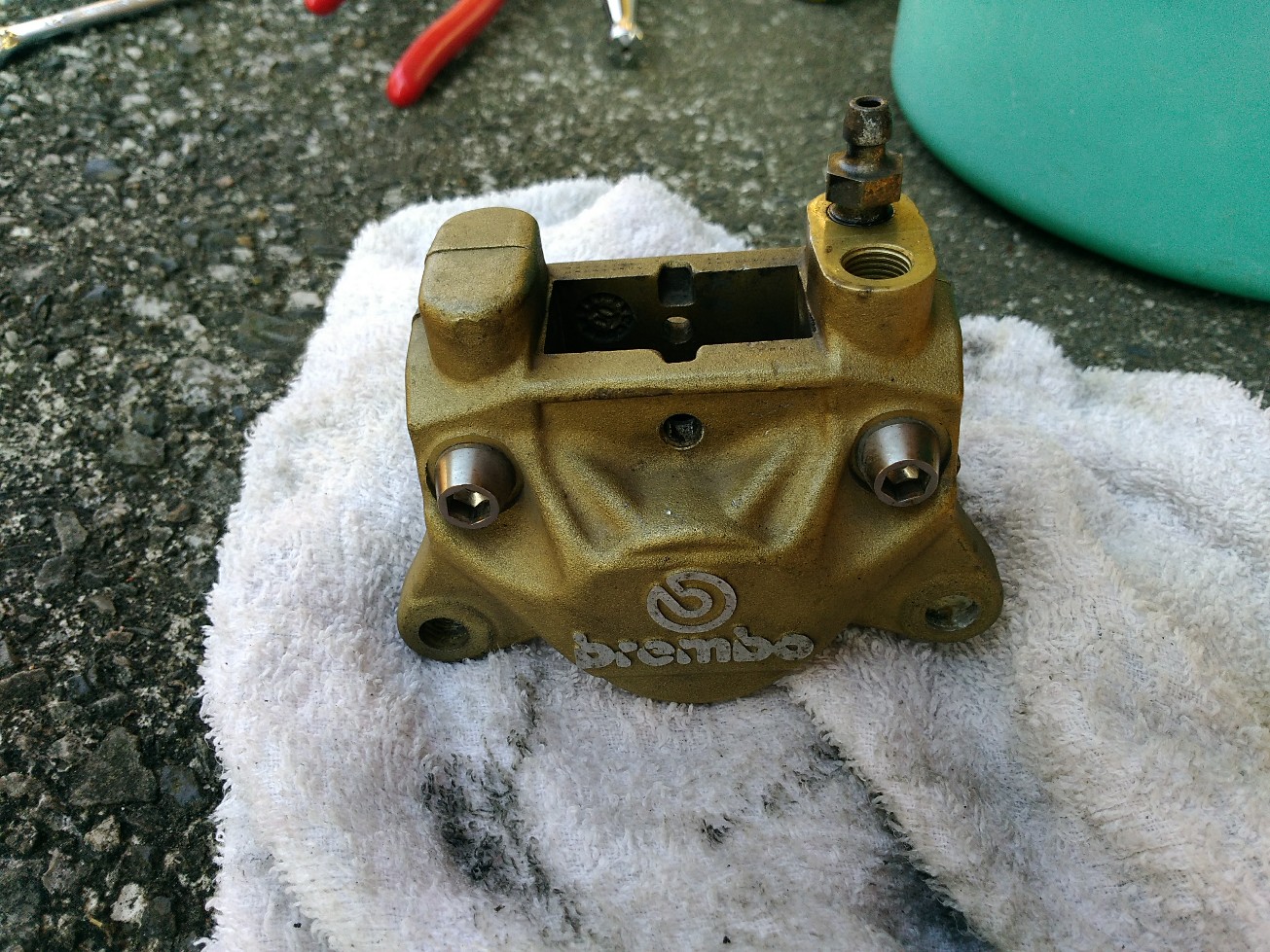 リアブレーキのピストンをもみだししようと車体から外そうとしたら、