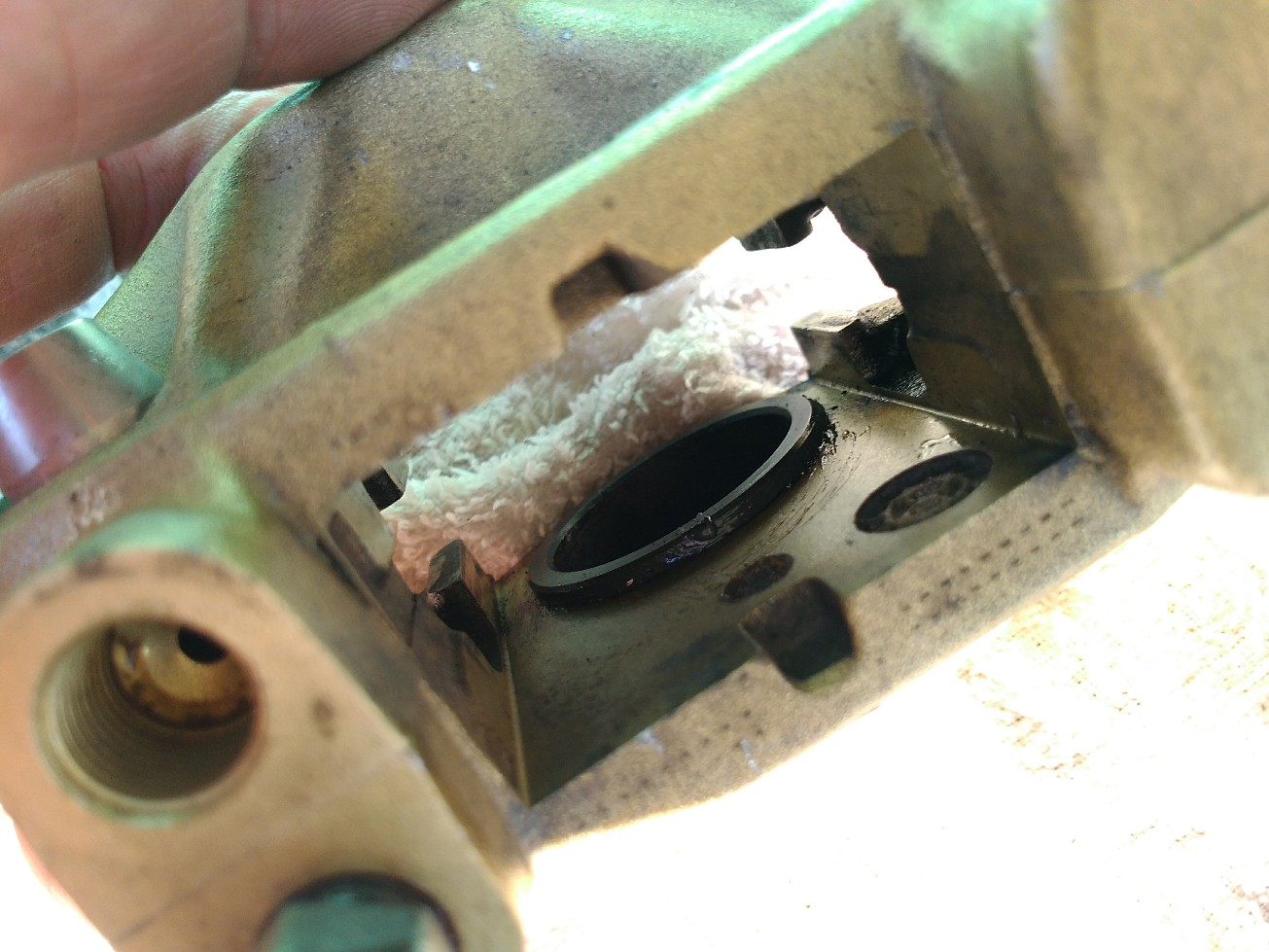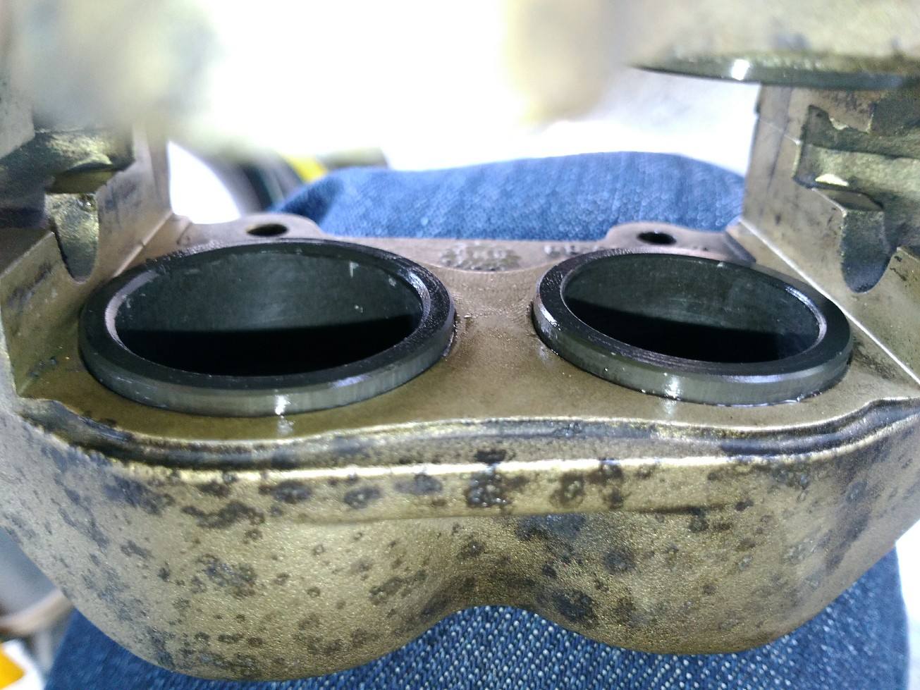 キャリパーを外し、ピストンを歯ブラシでゴシゴシ。