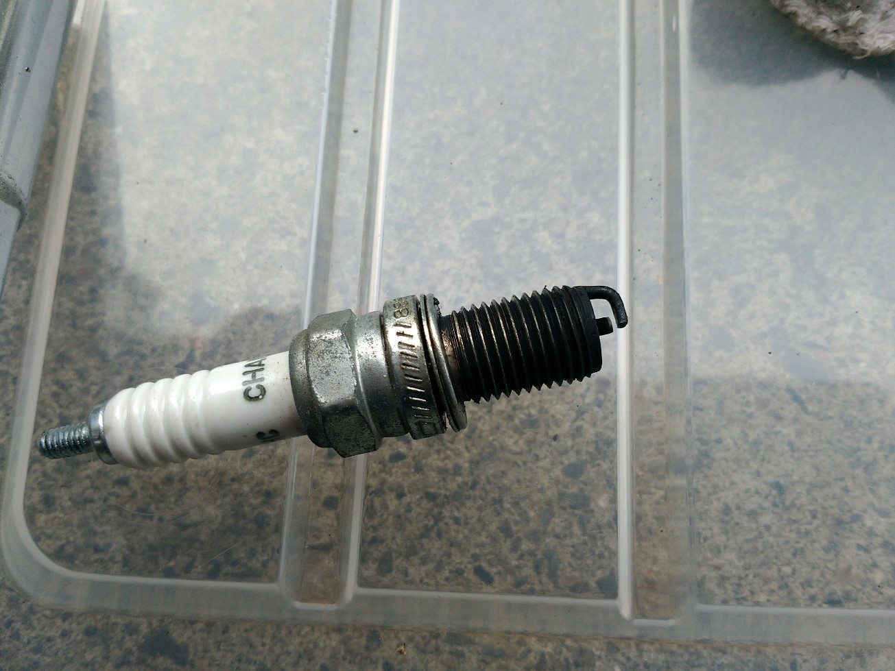 ・点火プラグの状態。電極が丸まってないのでOK。予備をいつも持っています。