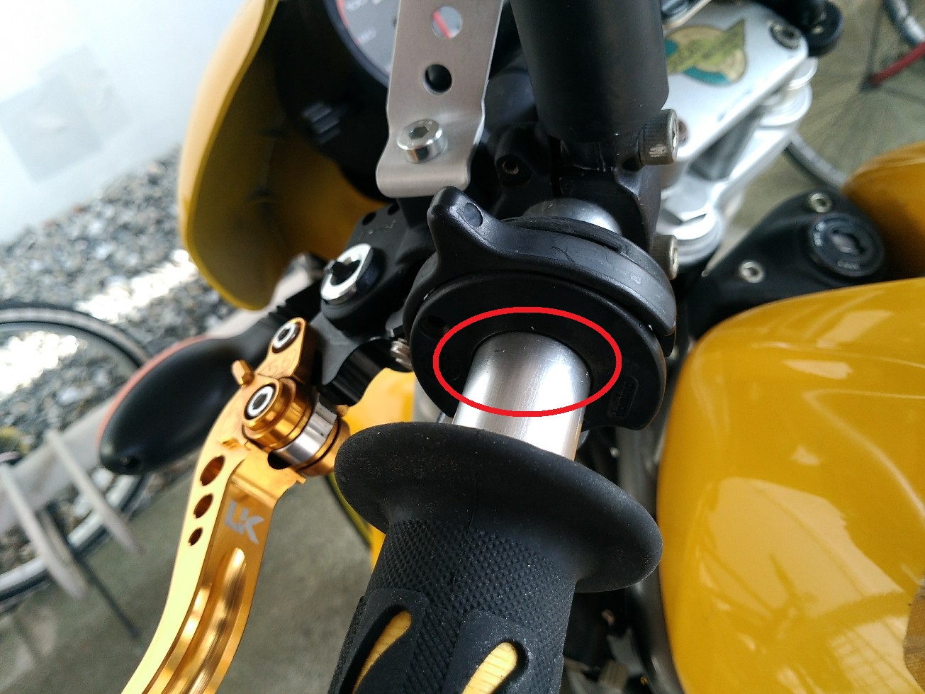 ・フロントフォークのステアリングステムの取付状態。緩みなしでOK。