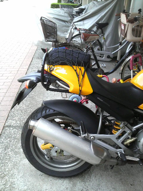 キャリアを装着するか、そのままネットで固定するか試したところ、そのままネットで大丈夫そうなので、