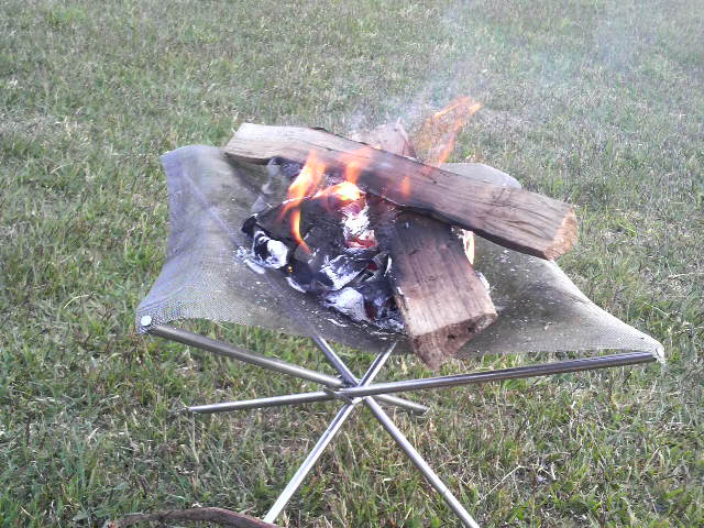 4時頃。まだ辺りは明るいけれど、待ち切れず焚火開始。