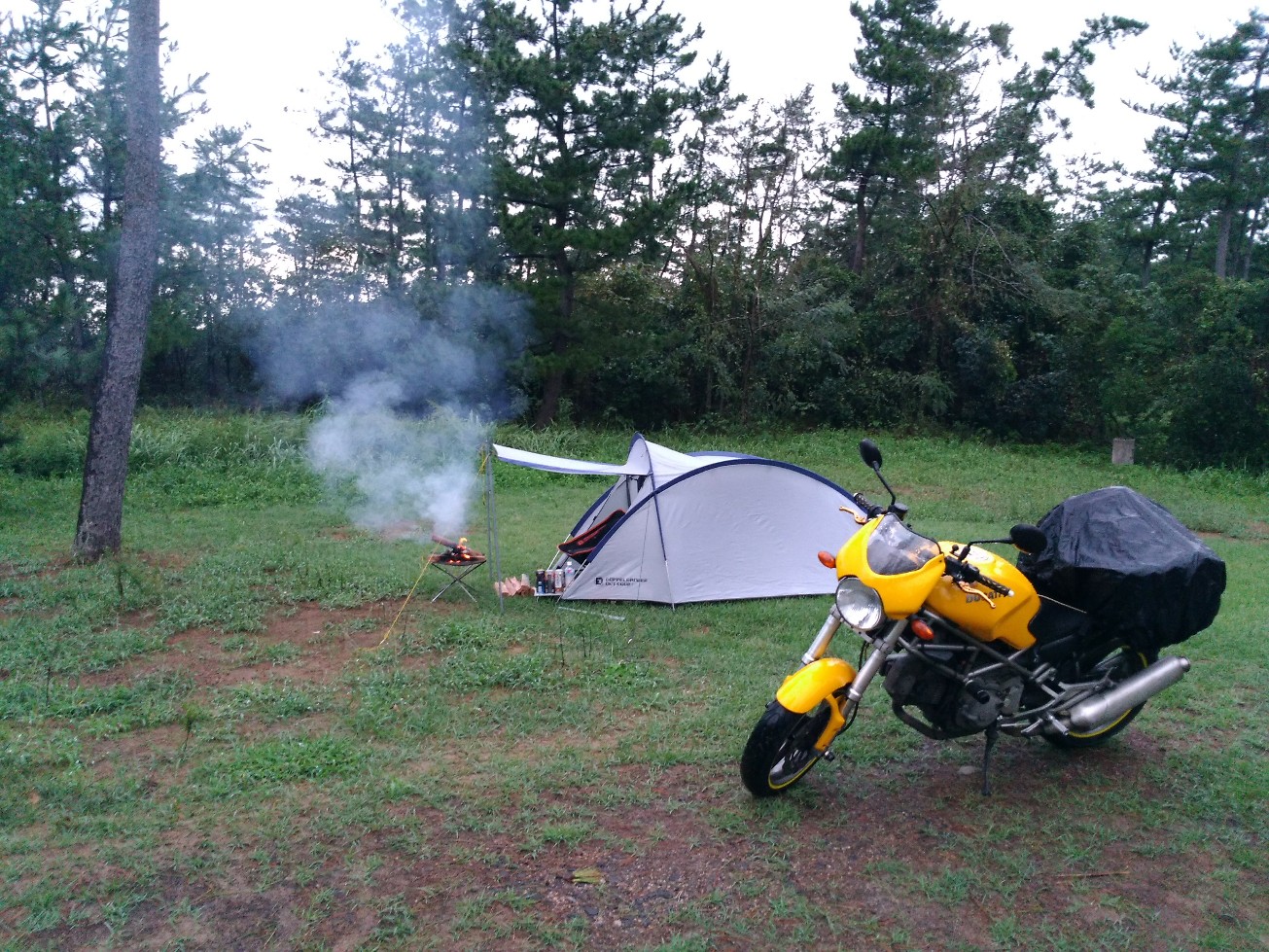 と無理やり焚火を続けていると雨が弱くなってきました。