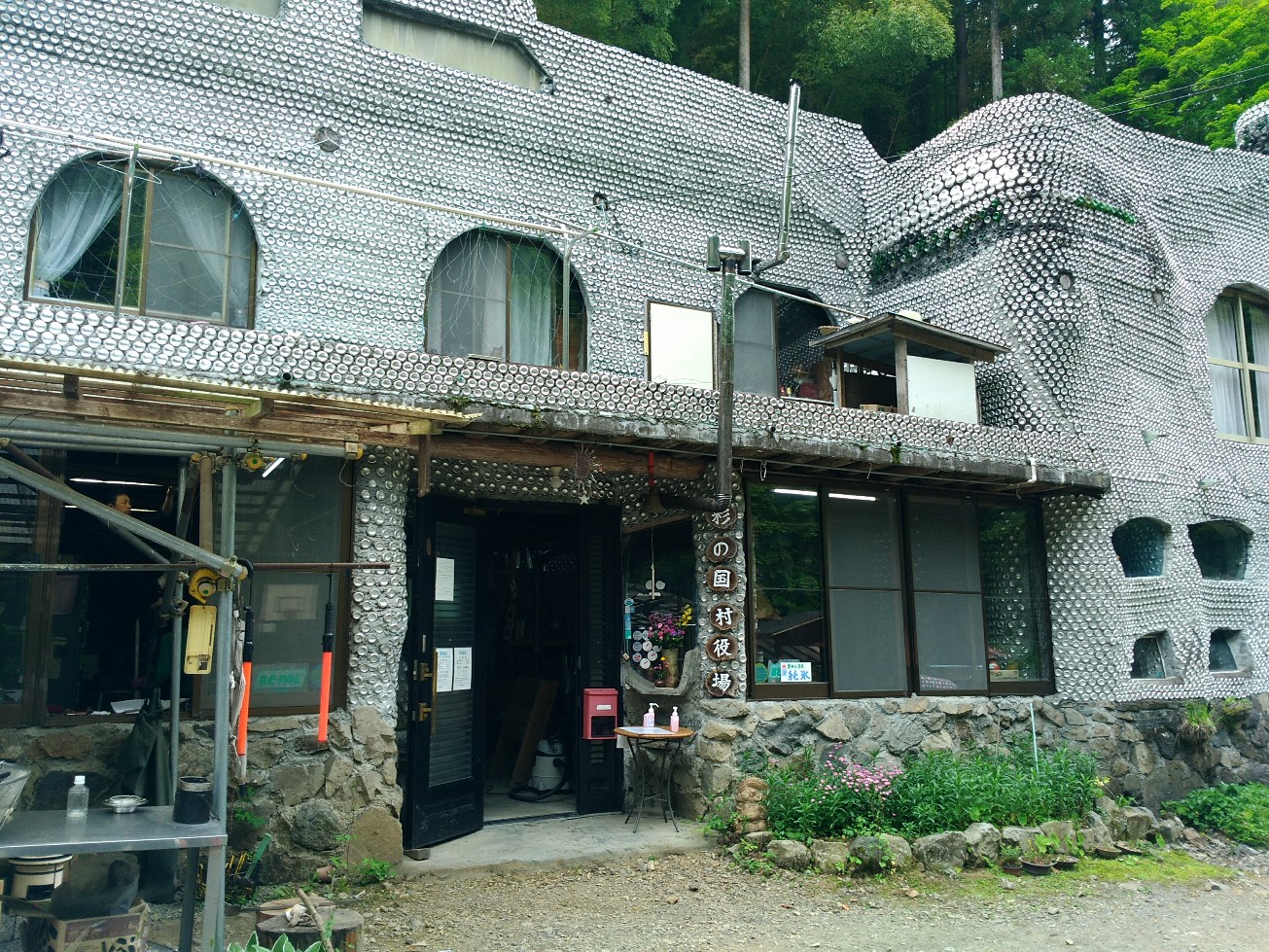 いろいろな方のブログに乗っていますが、管理棟など他の建物にも空き缶で装飾されています。